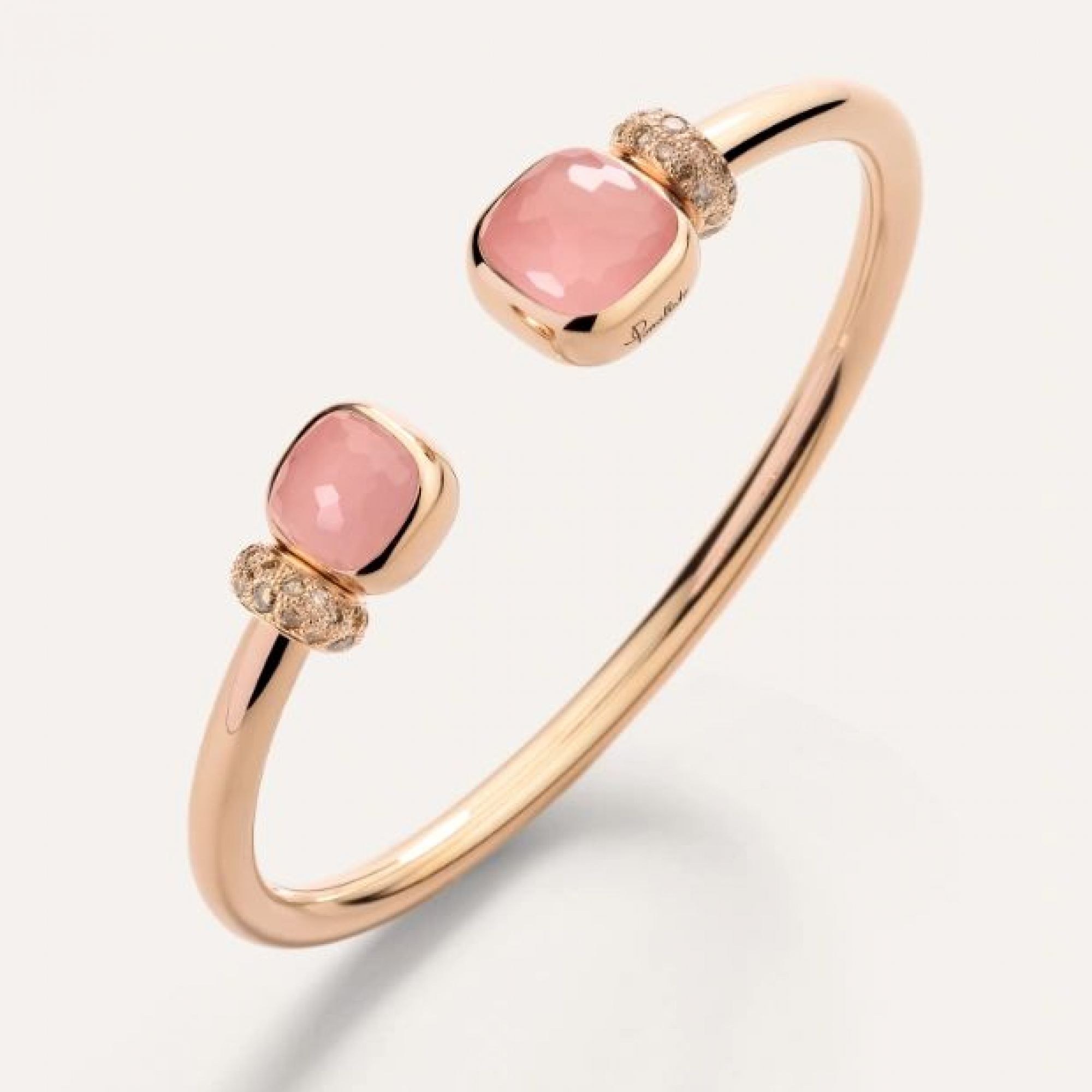 Armband aus 18 Kt Roségold mit 1 Rosenquarz und Rosenchalcedon (≈9.5 ct), 1 Rosenquarz und Rosenchalcedon (≈6.2 ct) und 38 braunen Diamanten (≈0.5 ct).