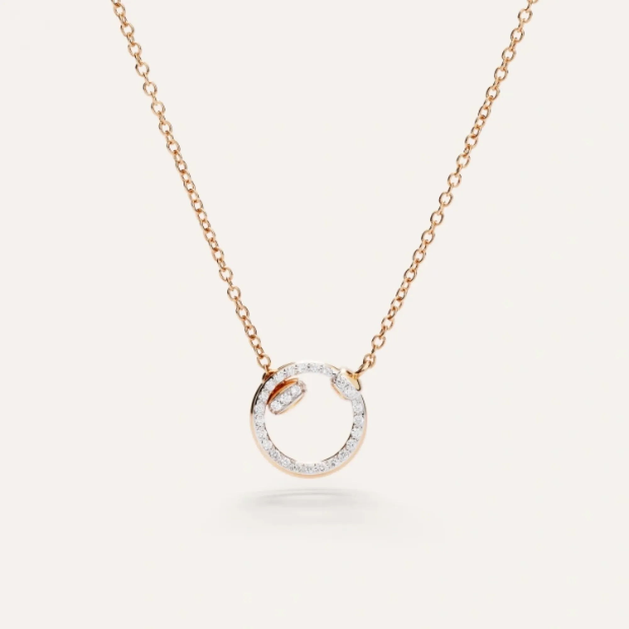Halskette mit Anhänger aus 18 Karat Roségold mit 36 weißen Diamanten (≈0,2 ct) auf rhodiniertem 18 Karat Roségold.