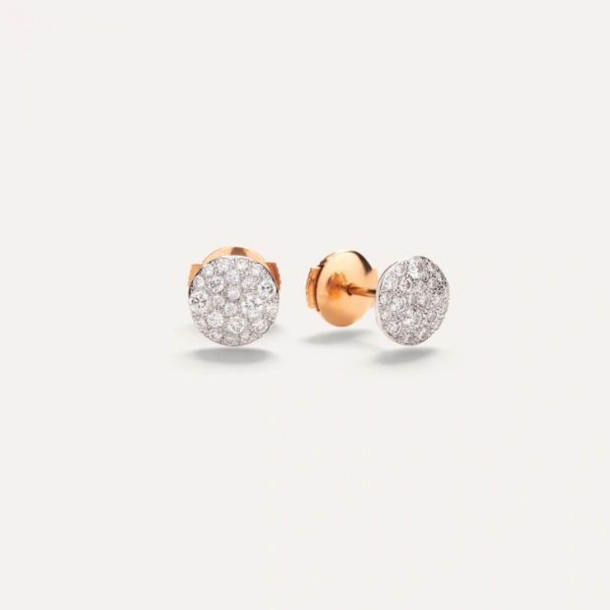 Ohrringe aus 18 Kt Roségold mit 44 weißen Diamanten (≈0.5 ct) auf weiß rhodiniertem 18 Kt Roségold.
