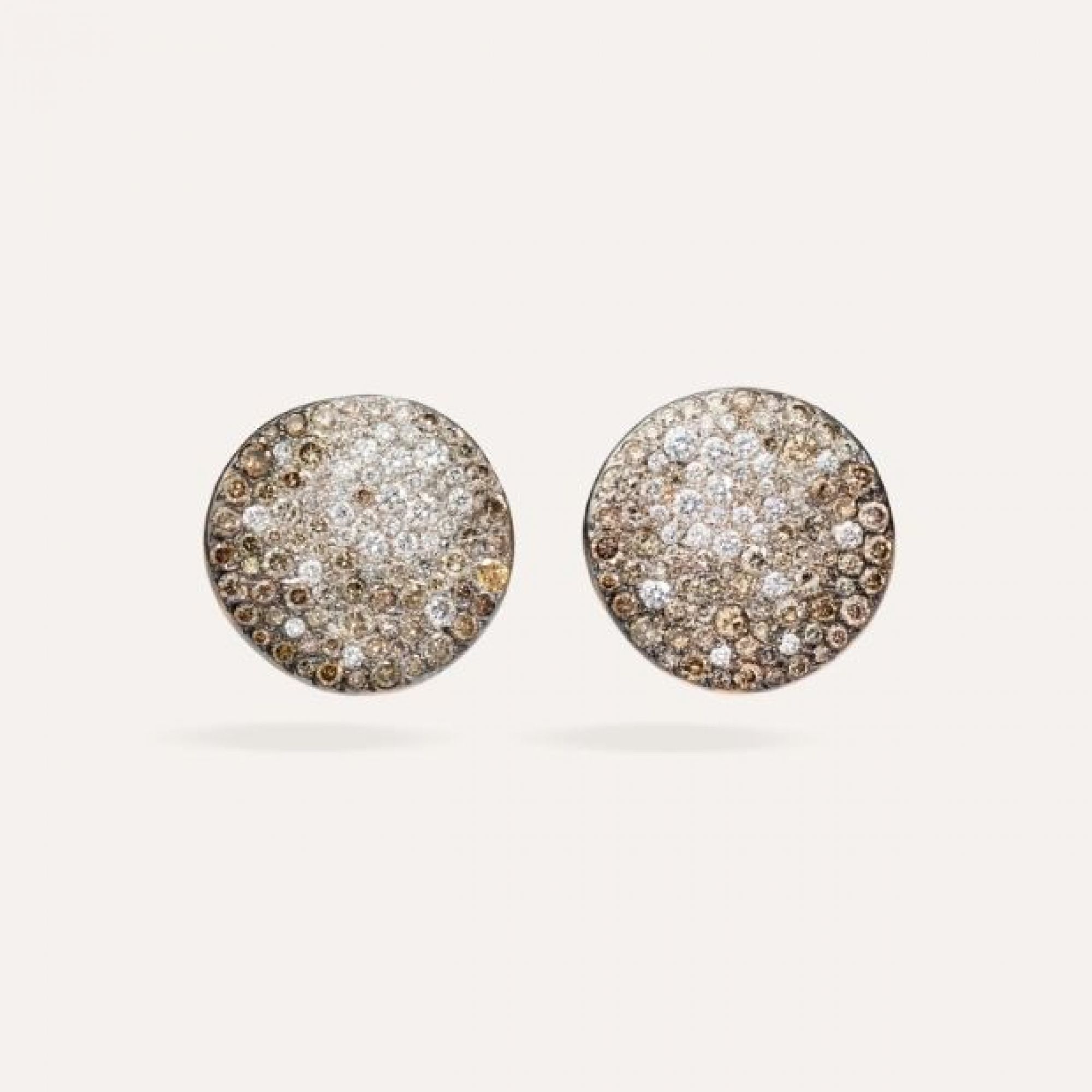 Ohrringe aus 18 Kt Roségold mit 54 weißen Diamanten (≈1 ct) auf weiß rhodiniertem 18 Kt Roségold und 132 braunen Diamanten (≈2.8 ct) auf schwarz rhodiniertem 18 Kt Roségold.