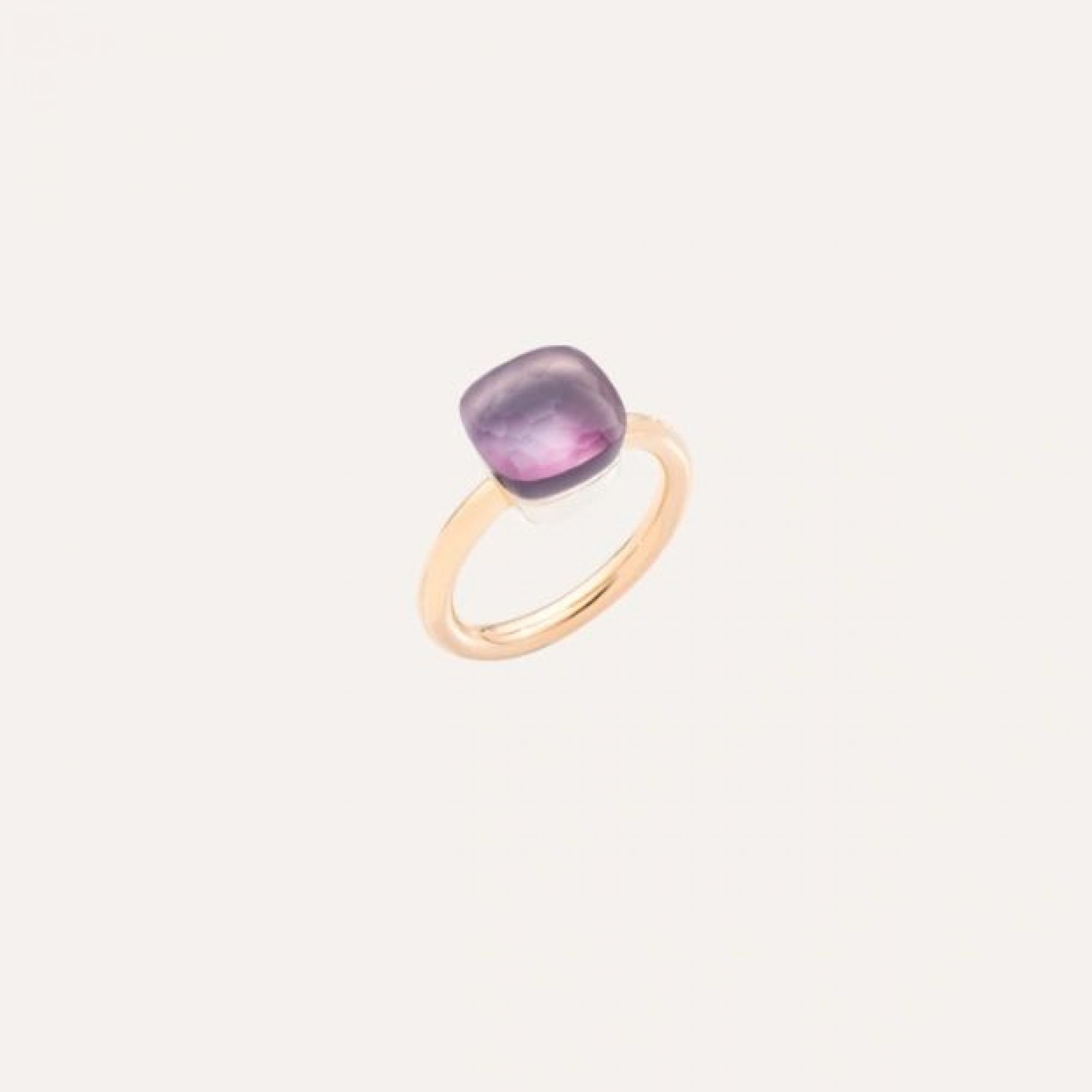 Pomellato bringt mit dem Nudo Gelé eine raffinierte neue Technik in die beliebte Nudo Kollektion. In Form eines klassischen Rings mit den satten Farbtönen von Amethyst und grauem Mondstein mit einem frostigen Satin-Finish.