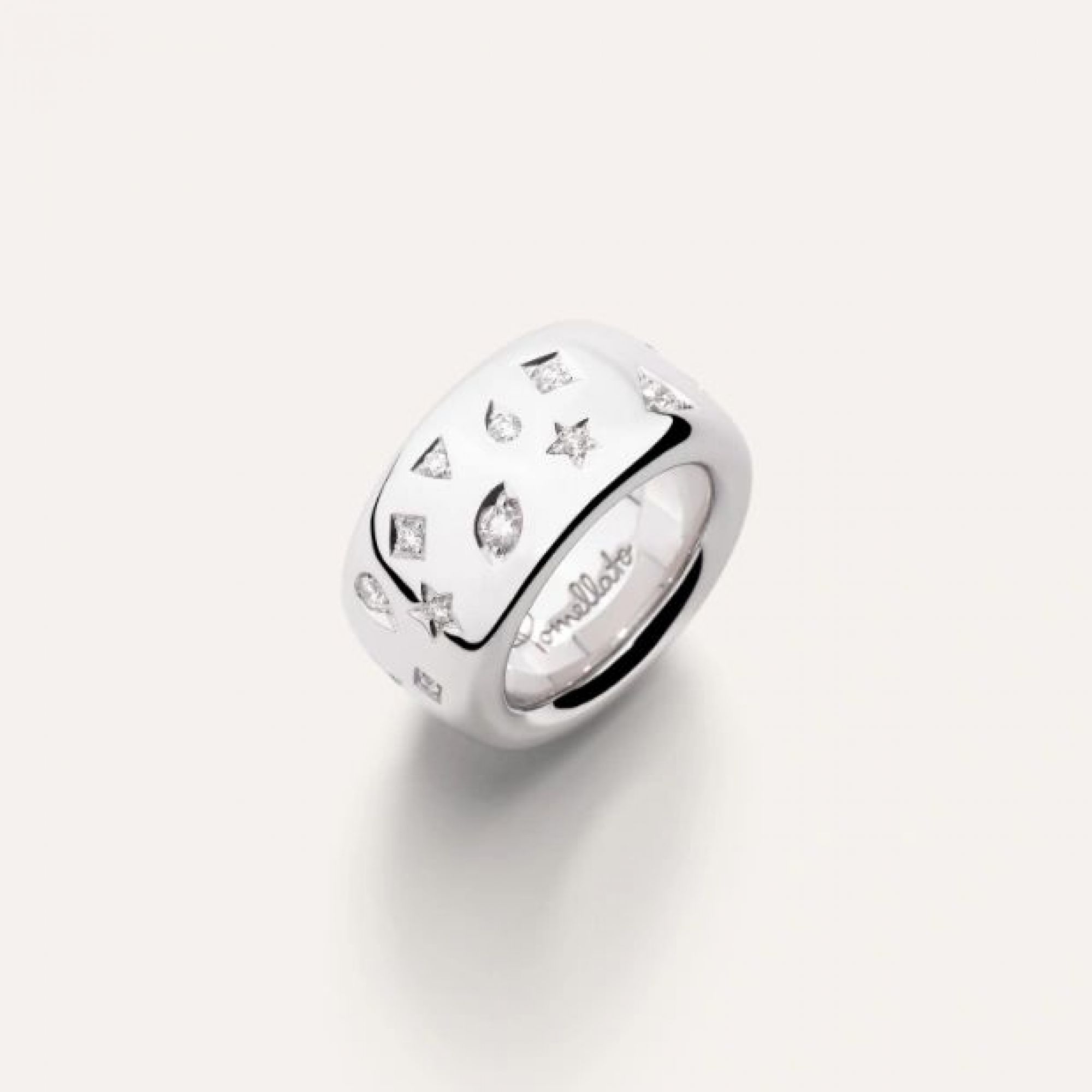Iconica, Pomellatos Kollektion schön geschwungener Goldschmuckstücke, wurde als Hommage an die reiche Goldschmiedetradition der Maison gefertigt. Jede handwerkliche Iconica-Kreation ist ein Meisterwerk der Schmuckkunst für überzeugte Schmuckliebhaberinnen. Die Schmuckkollektion aus Weißgold umfasst mehrere neue Schmuckstücke, darunter Weißgold-Versionen der beliebtesten Roségold-Ringe, besetzt mit unverwechselbaren Iconica-Diamantformen.