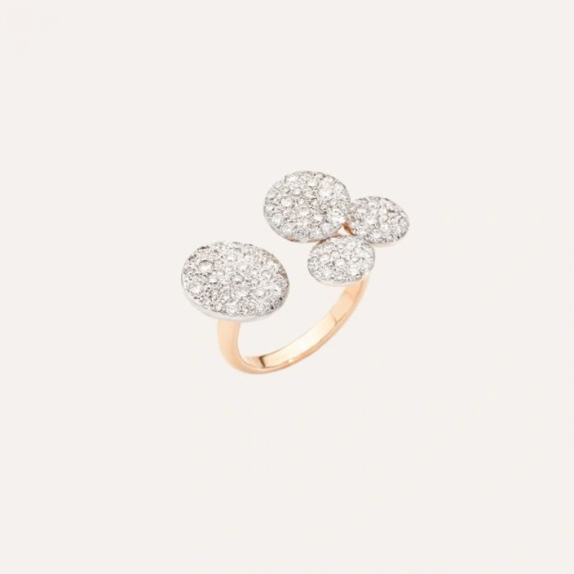 Unkonventioneller Stil, schicker Look, trendiges Design. Der neue Sabbia Schmuck verkörpert die gesamte unverwechselbare Identität von Pomellato. Er ist nach der Kunst und mit dem Know-how der Goldschmiedemeister des Mailänder Hauses gefertigt. Mit der Einführung zweier neuer „between the finger“ Ringe landet Pomellato einen doppelten Erfolg. Die Ringe repräsentieren in jeder Hinsicht eine Neuheit und zeichnen sich durch ein außergewöhnliches Zusammenspiel aus: Die charakteristischen Diamantenscheiben schwingen dank eines beweglichen Gelenks bei jeder Handbewegung sanft mit.