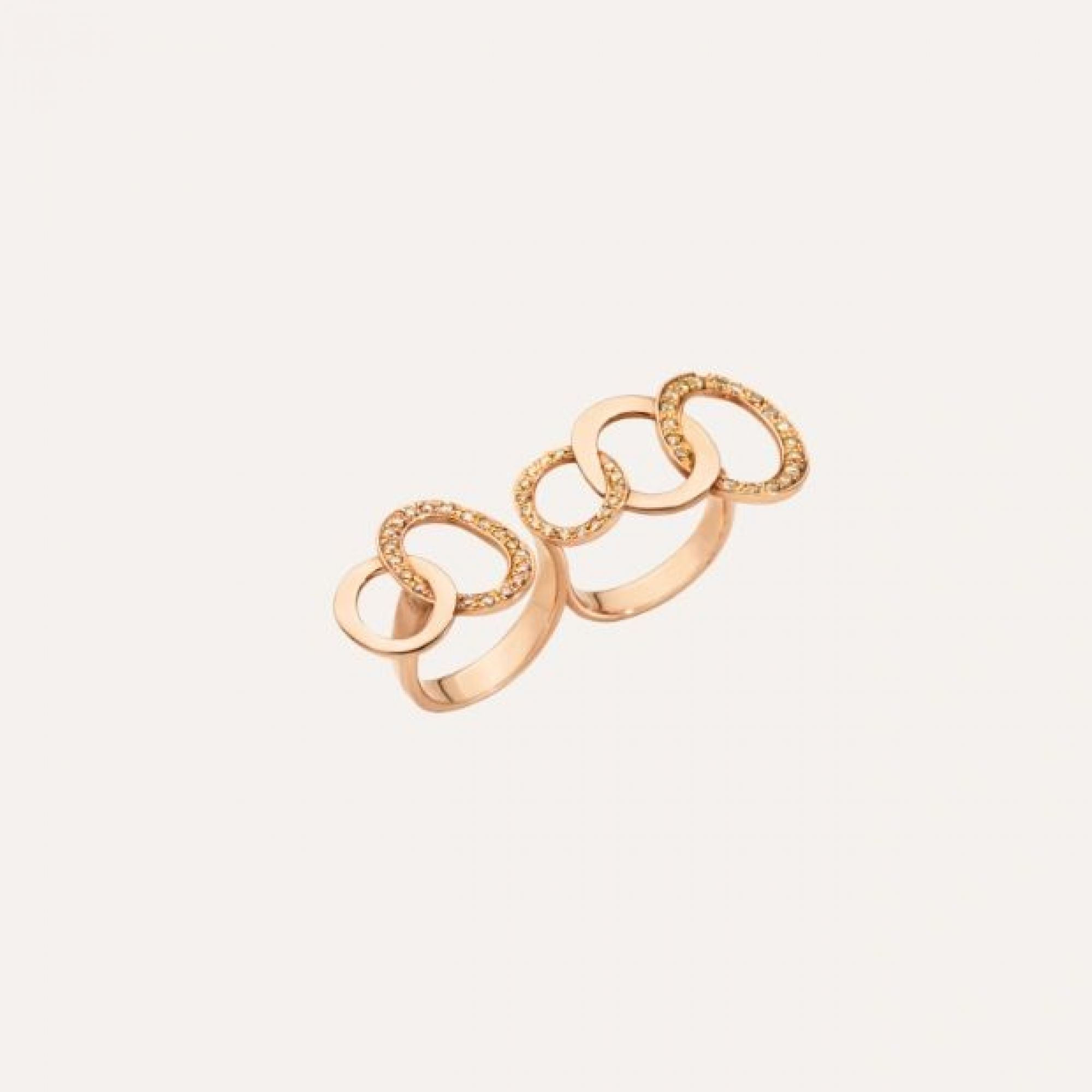Pomellato zelebriert den einzigartigen Stil seiner Maison mit den unübersehbaren neuen Schmuckstücken der Kollektion Brera für die schicke und modebewusste Frau. Die Schmuckstücke der Kollektion Brera sind etwas ganz Besonderes und für selbstbewusste Frauen bestimmt, die den kühnen italienischen Stil lieben. Die Zwischenfingerringe - in Ein- oder Zweifinger-Ausführung - wölben sich zu Kreisen von strahlender Pracht aus Roségold und Roségold mit braunen Diamanten.