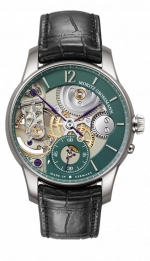 Großzügige Zifferblattausschnitte gewähren den freien (Ein-)Blick in die kunstvollen Details, deren faszinierende Funktionen in den Händen erfahrener Uhrmachermeister entstanden. Absolut beeindruckend ist dabei die gespiegelte Konstruktion des Werks. Befinden sich Komponenten wie die Grossmann’sche Unruh, der von Hand gravierte Unruhkloben und das sonnengeschliffene Sperrrad normalerweise auf der Rückseite der Uhr, lassen sich bei der BACKPAGE von der Zifferblattseite her bestaunen. Die Rückseite hingegen zieren Handaufzug mit Drücker und Sekundenstopp. Das Ablesen der Zeit wird zum völlig neuen Erlebnis!