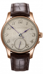 Für die einzigartige Tremblage-Gravur der eleganten Vintage-Uhr werden die Werkzeuge in höchster Uhrmacherkunst mit einer zitternden Bewegung geführt und schaffen so die außergewöhnliche Optik des Zeitmessers: Neusilber, eine bei historischen Uhren häufig genutzte Legierung, entwickelt dank der kunstvollen Oberflächenbearbeitung einen silberähnlichen Farbton mit ganz besonderer Ausstrahlung. Allein die Tremblage des Zifferblatts nimmt mehrere Tage und unzählige Stunden beim Graveur in Anspruch, nur noch vollendet durch die Veredelung der Finisseure. Das Resultat? Ein Kunstwerk „schönster deutscher Handwerkskunst“!